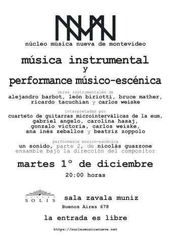 Concierto 762: Música instrumental / Performance músico-escénica Lee más sobre Concierto 762: Música instrumental / Performance músico-escénicaMartes 1 de Diciembre de 2020 20:00 Sala Zavala Muniz