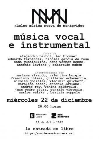 Concierto 766: Música vocal e instrumental Lee más sobre Concierto 766: Música vocal e instrumentalMiércoles 22 de Diciembre de 2021 20:00 Sala Zitarrosa